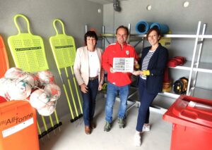 Im Rahmen einer kleinen Übergabe wurde das ILE-Förderschild gemeinsam von Bürgermeisterin Monika Meyer und ILE-Umsetzungsmanagerin Stephanie Lambert dem Vorstand des SV Erlbach e.V., Manfred Grabmeier, überreicht. Grabmeier betonte die Bedeutung des Projekts: